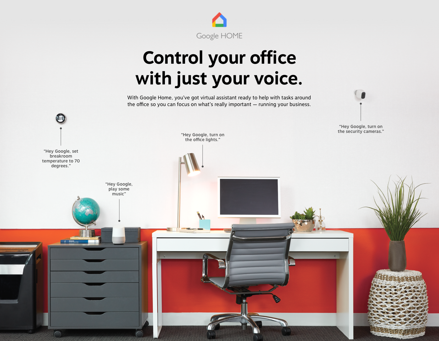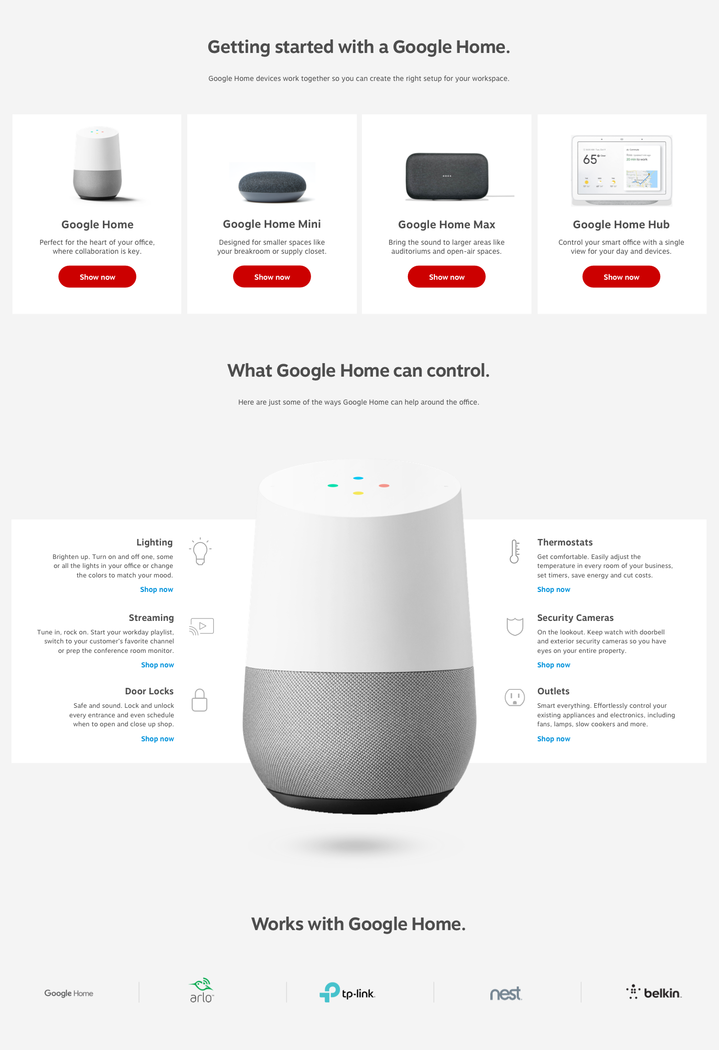 In 2018, Staples began selling Google Home connected devices, targeted at businesses. Through research and wireframing, I was able to create a responsive experience that introduced the idea of a “connected office” to potential customers. This page also demonstrated some of the voice commands and communicated the benefits of having a Google Assistant-enabled office.